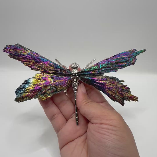 Meet the Aura-Coated Kyanite Dragonfly — a symbol of transformation, lightness, and higher connection. Crafted from Brazilian Kyanite and finished with a luminous aura coating, this piece shimmers with ethereal blues and rainbow flashes.