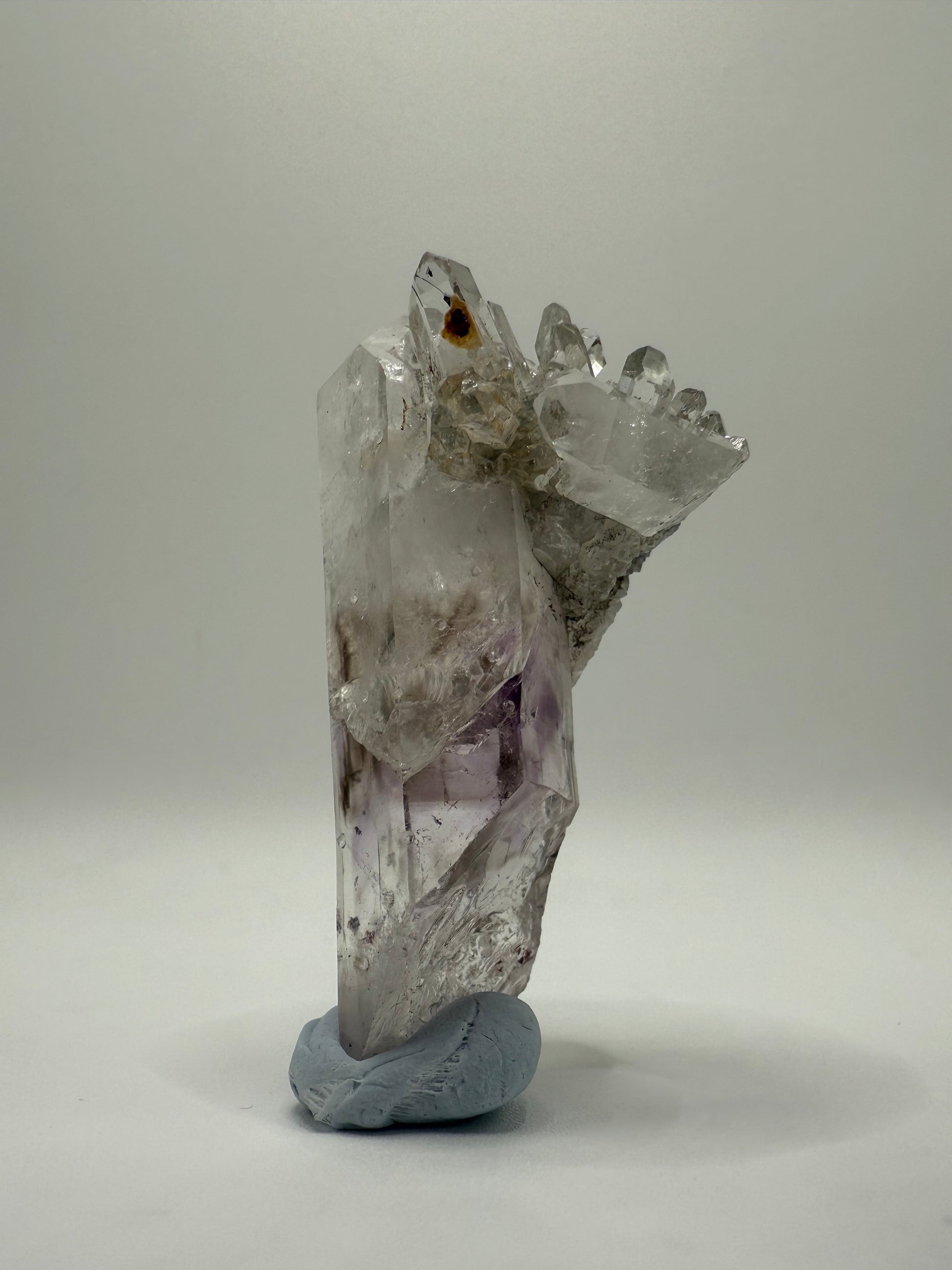 Brandberg Quartz with mesmerizing clarity, ethereal inclusions, and a unique formation—featuring a beautiful quartz cluster at the top. A powerful piece for high-vibrational energy and spiritual connection.