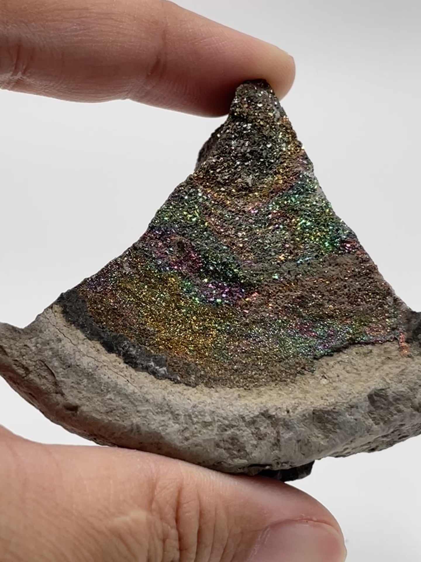 Rainbow pyrite, also known as iridescent pyrite or chalcopyrite, is a variety of pyrite that exhibits a colorful, rainbow-like tarnish on its surface. Metaphysically, rainbow pyrite is associated with enhancing mental clarity, inner vision, and creativity while helping to align and balance the chakras, making it a sought-after crystal for personal growth and spiritual exploration.